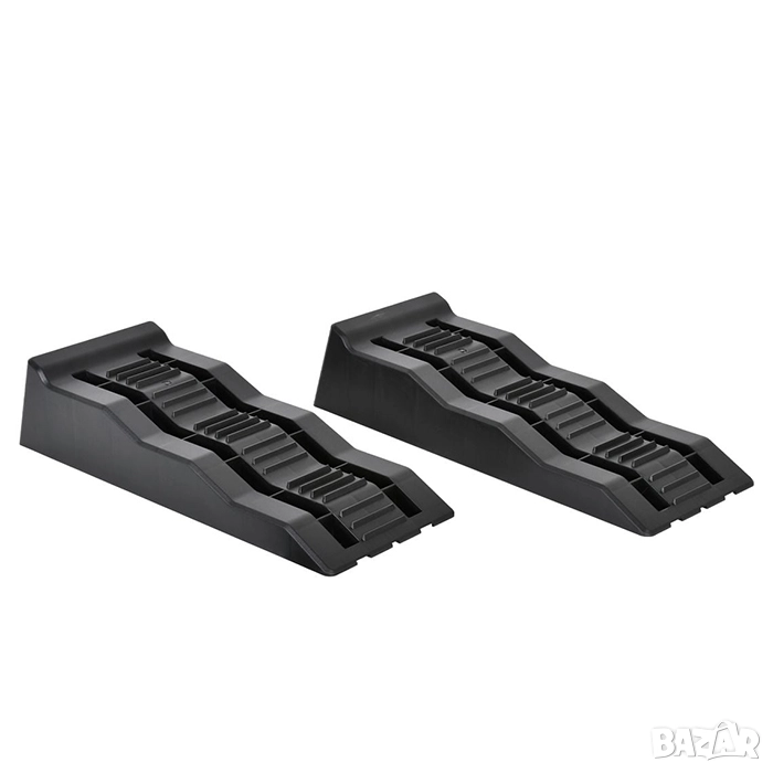 Комплектът включва клинове за блокиране на колелата и основи (решетки) за допълнителна стабилност върху меки или хлъзгави повърхности.