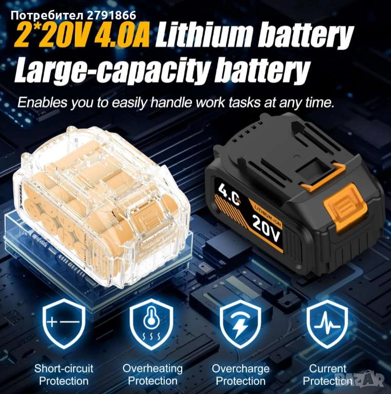 - Удължено време на работа с двойни 4.0Ah батерии - Оборудван с 2 мощни 4.0Ah литиеви батерии, този 1/2 ударен гайковерт предлага изключително време на работа, което ви позволява да работите продължително време без постоянно презареждане. Тази конфигурация с две батерии е идеална за професионалисти, които се справят с взискателни, дълготрайни проекти и минимизира времето за престой, така че можете да се фокусирате върху ефективното изпълнение на работата.