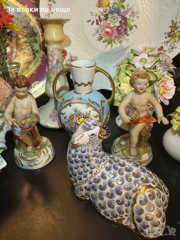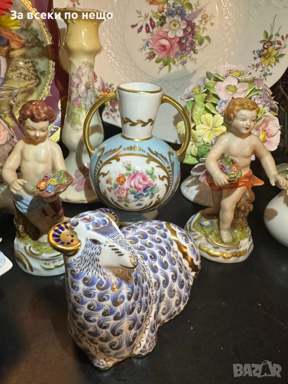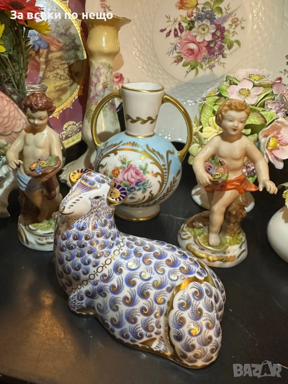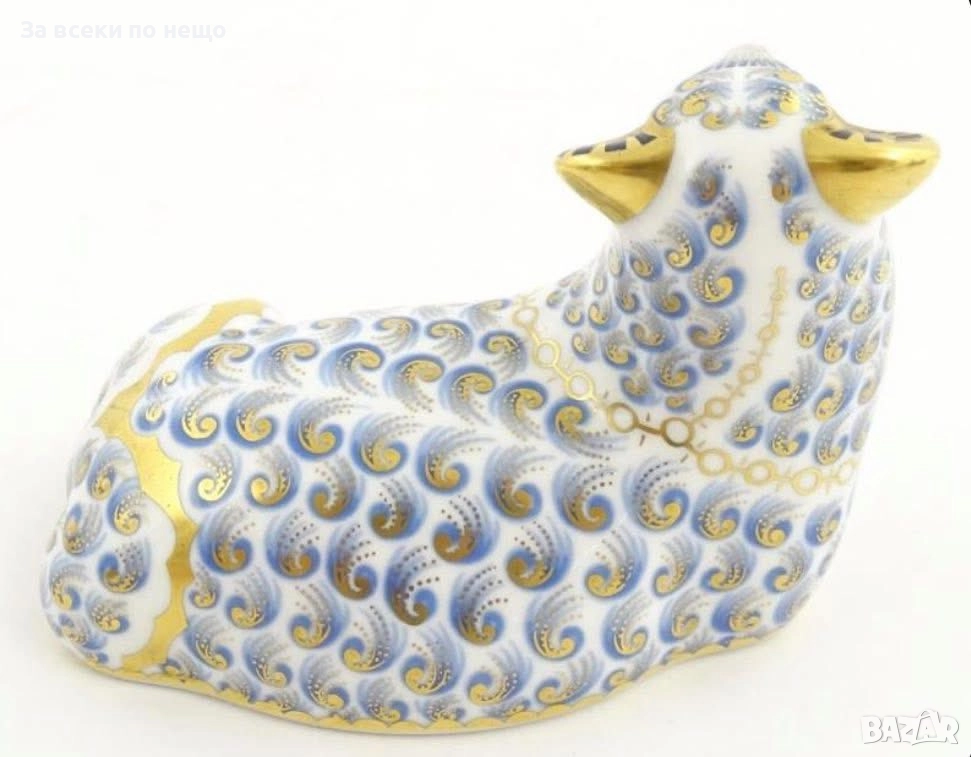 A Royal Crown Derby England paperweight modelled as a ram/ Circa 1988 - великолепие в злато и красота, невероятно и неповторимо излъчване за всяка колекция или витрина, размери 12/10 см със златна запушалка, отлично качество и състояние с оригинална кутия.