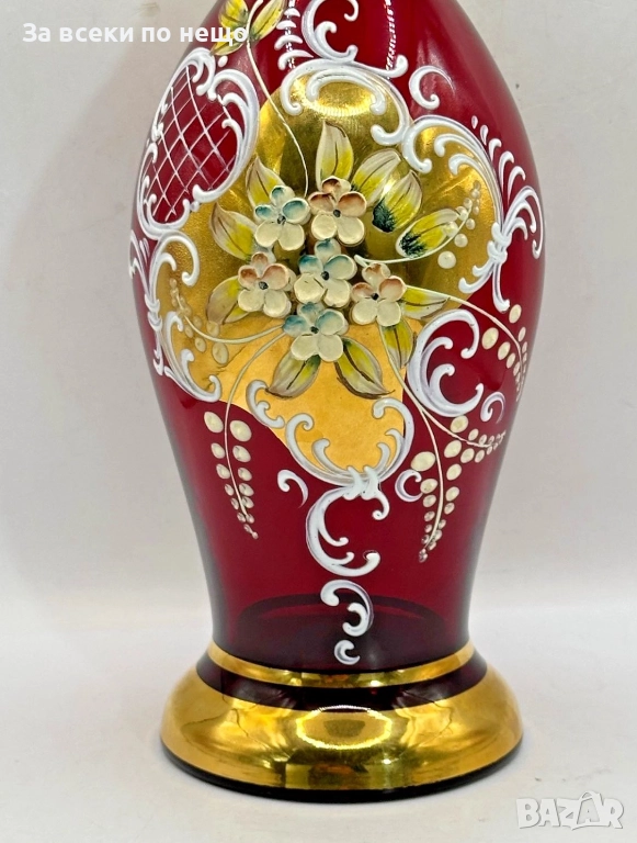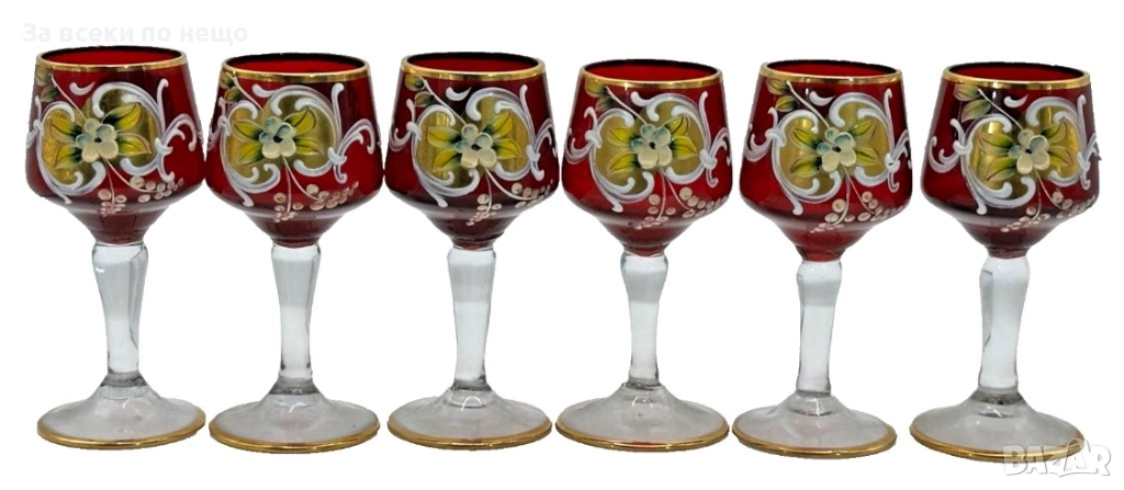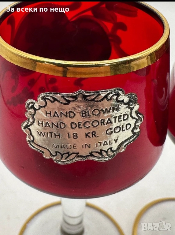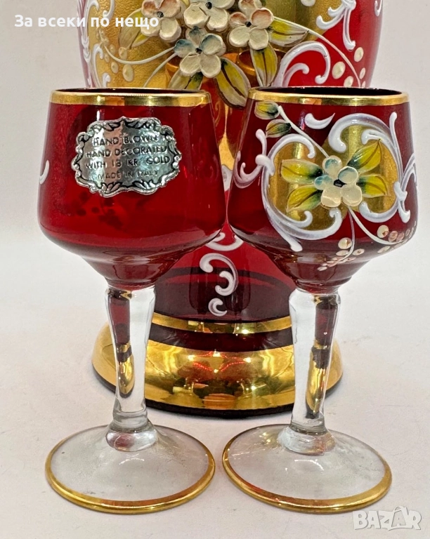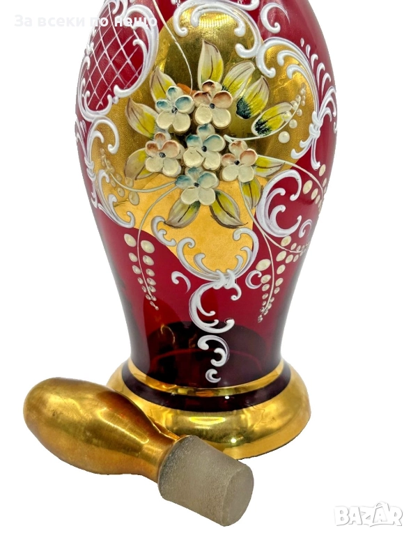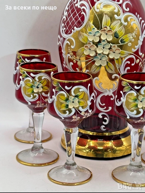- великолепен комплект за високо градусен алкохол, приказна ръчно изработена красота в рубинено червено с много класа и уникалност, безценен екземпляр с изключителна красота и 18 карата масивни декорации, отлично качество, произведение на изкуството.