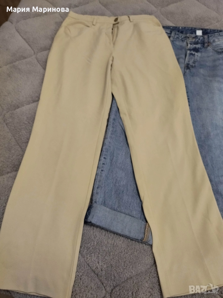 -елегантен бежов панталон с широки крачоли и висока талия, номер 40