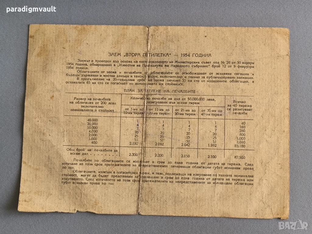 Облигация от 1954г.