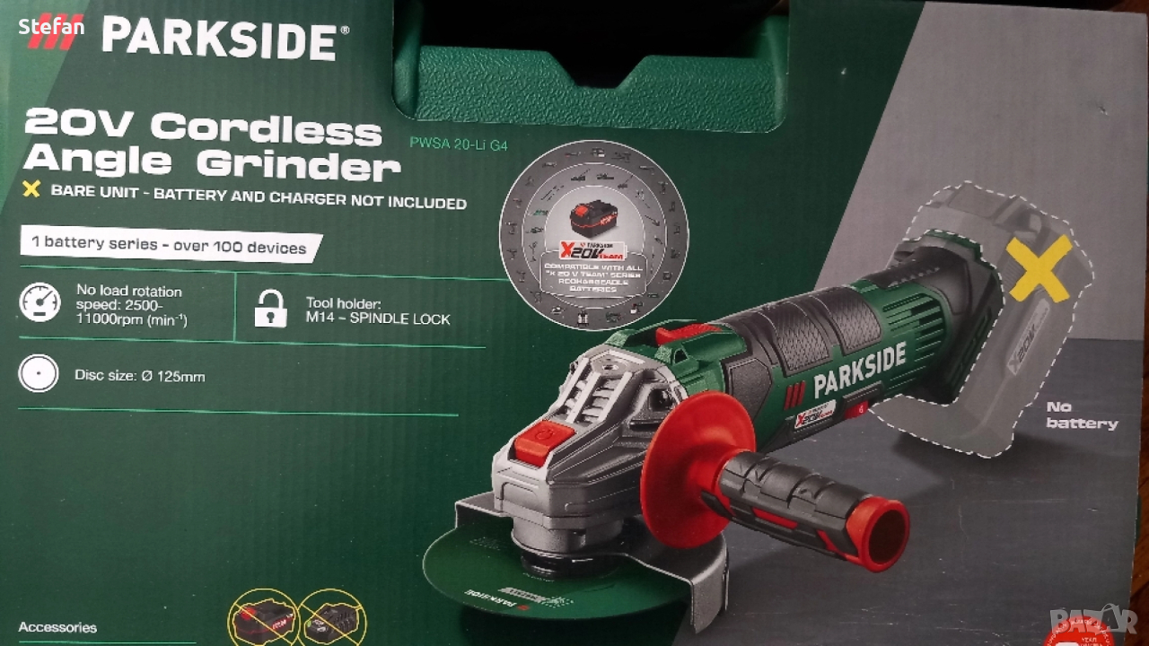 Акумулаторен Ъглошлаф PARKSIDE, снимка 1 - Винтоверти - 52933245 Акумулаторен Ъглошлаф PARKSIDE, снимка 2 - Винтоверти - 52933245 Акумулаторен Ъглошлаф PARKSIDE, снимка 3 - Винтоверти - 52933245 1/3