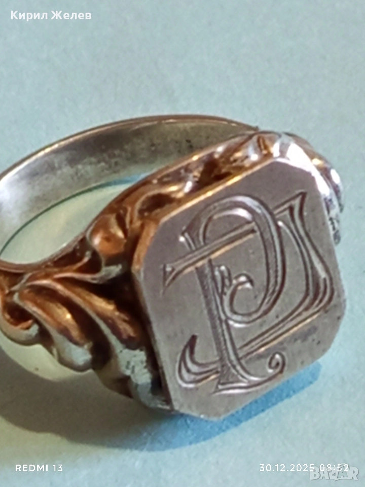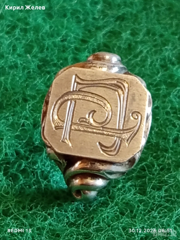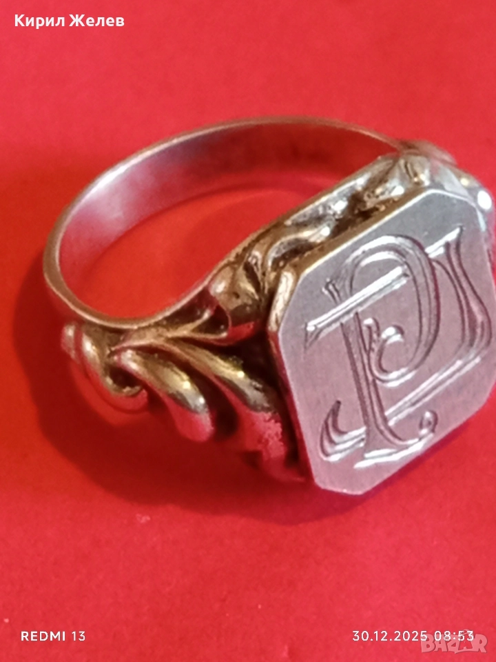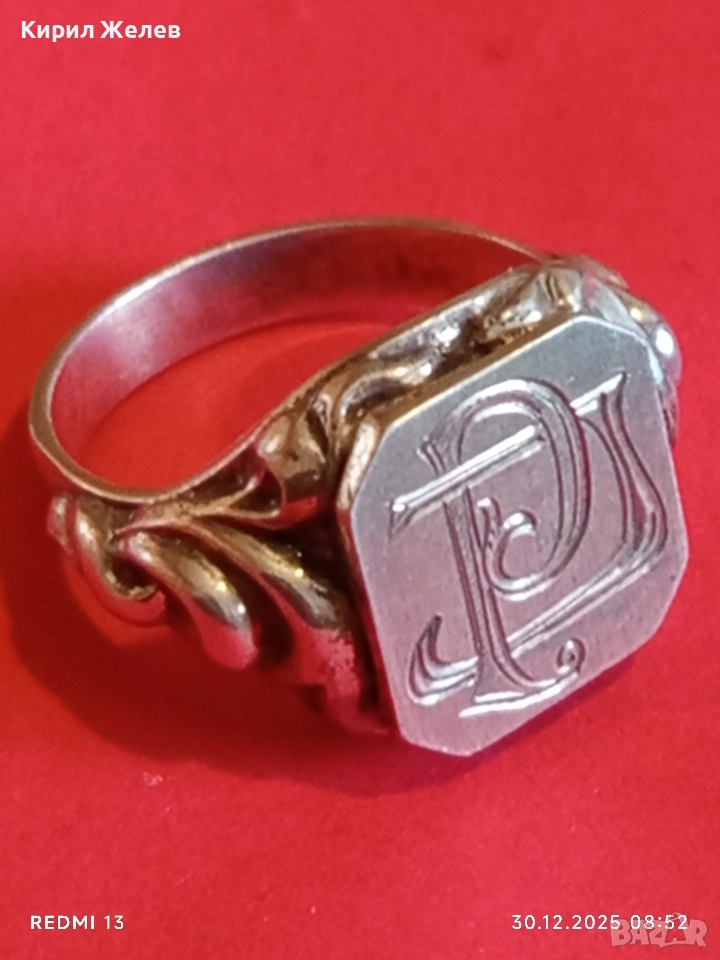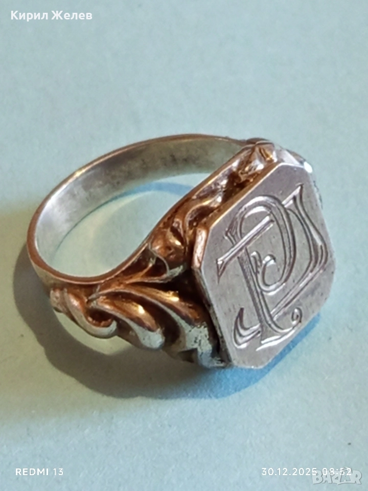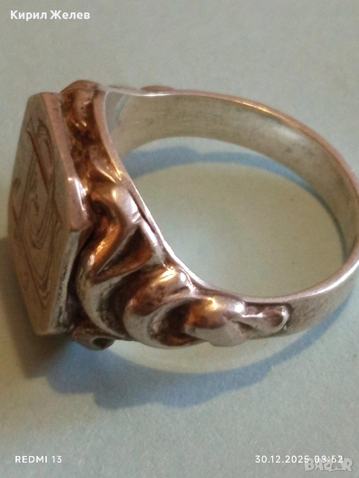 Старинен сребърен пръстен с монограм орнаментиран ювелирна изработка 51827