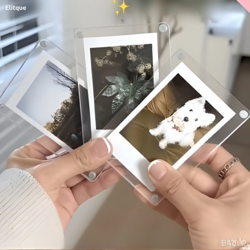 ✨ Двустранни магнитни рамки за снимки – комплект 5 броя ✨ 📸🧲 Предлагам магнитни рамки за снимки, идеални за стилно подреждане и показване на любимите ви спомени върху хладилник или други метални повърхности. Минималистичен дизайн с двустранен прозрачен дисплей 👌 🔧 Характеристики: ✔️ Продукт: магнитни рамки за хладилник ✔️ Брой в комплект: 5 броя ✔️ Материал: премиум акрил с вградени магнити ✔️ Размери: 6 × 9 × 0,5 см ✔️ Тип дисплей: двустранен, прозрачен 📷 Съвместимост: ✔️ Instax mini series ✔️ Polaroid PIC-300 ✔️ Polaroid Z2300 ✔️ Polaroid Snap Touch ✔️ ZIP Mobile Printer 🏠 Предназначение: ✔️ Магнитни повърхности ✔️ Хладилник ✔️ Метални табла ✔️
