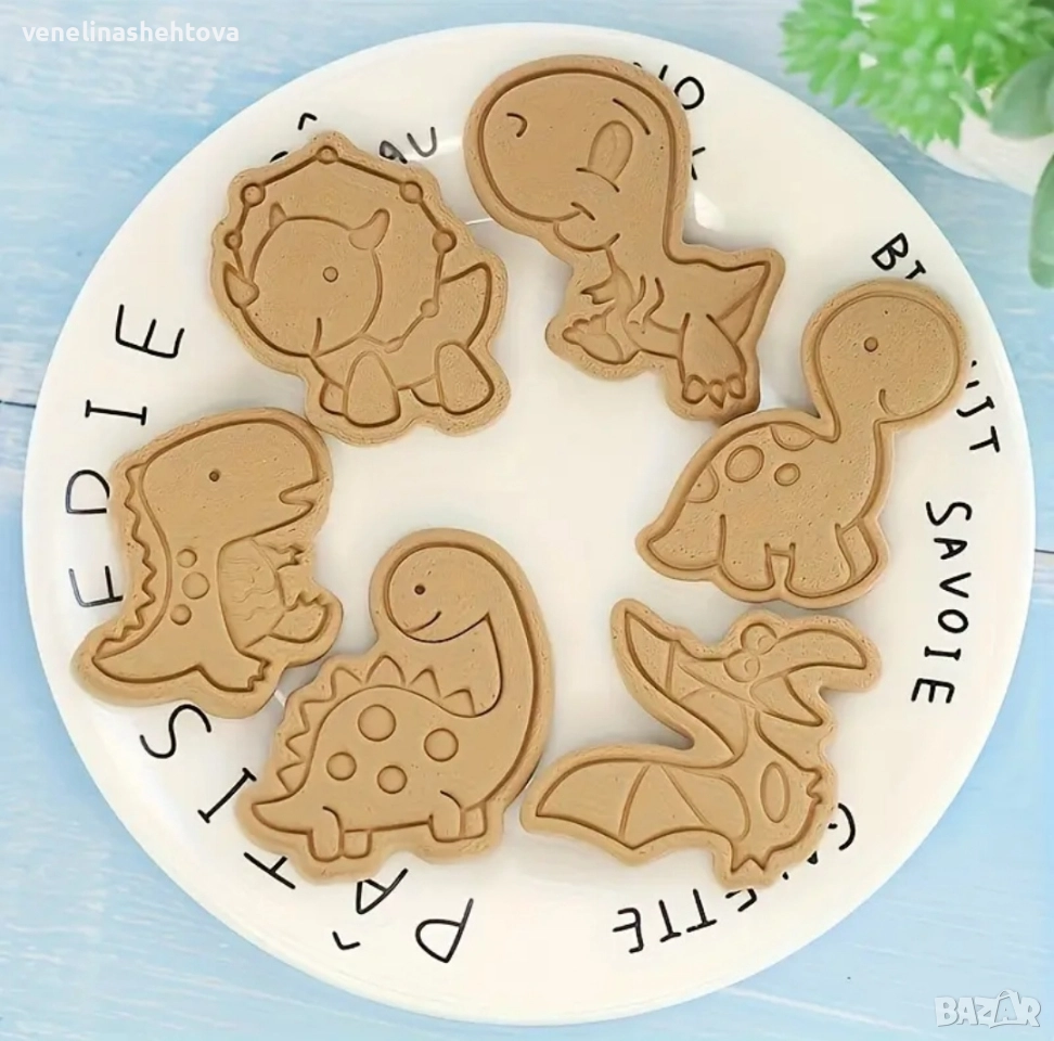 6 броя динозаври пластмасови резци с печат резец тесто бисквитки фондан декорация торта мъфини → Обява 52933515