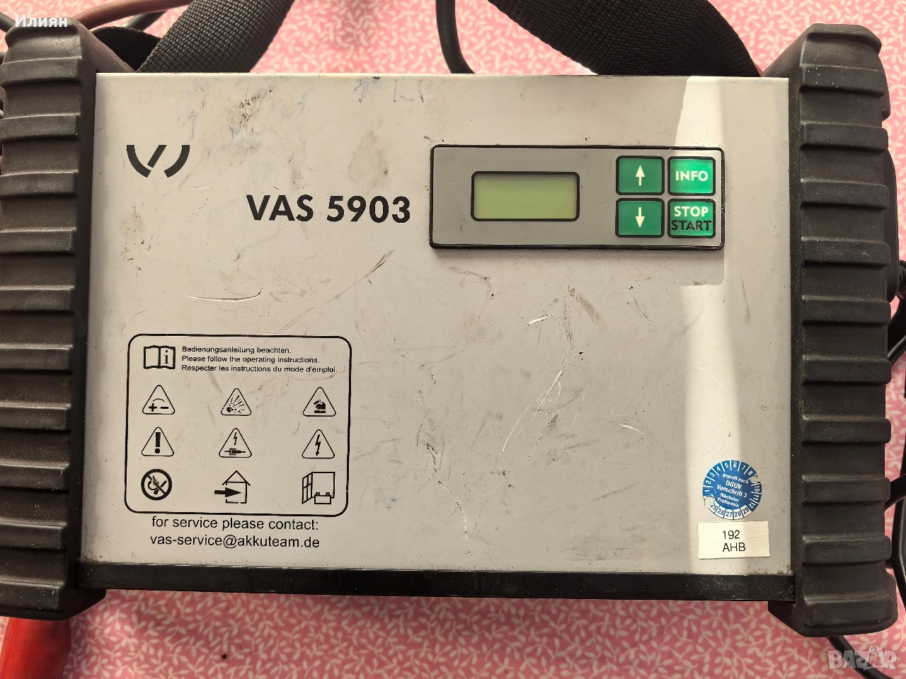 Продавам в добро състояние професионално зарядно за volkswagen автомобили на марката VAS модел-5903