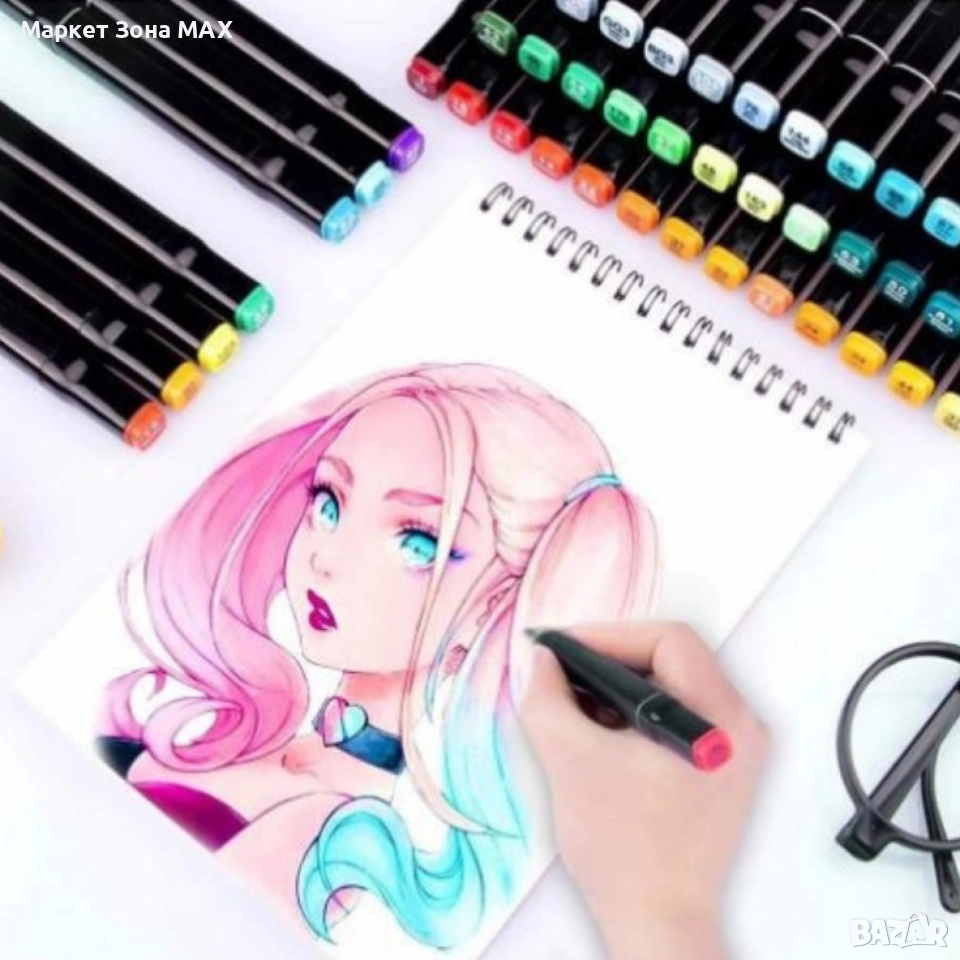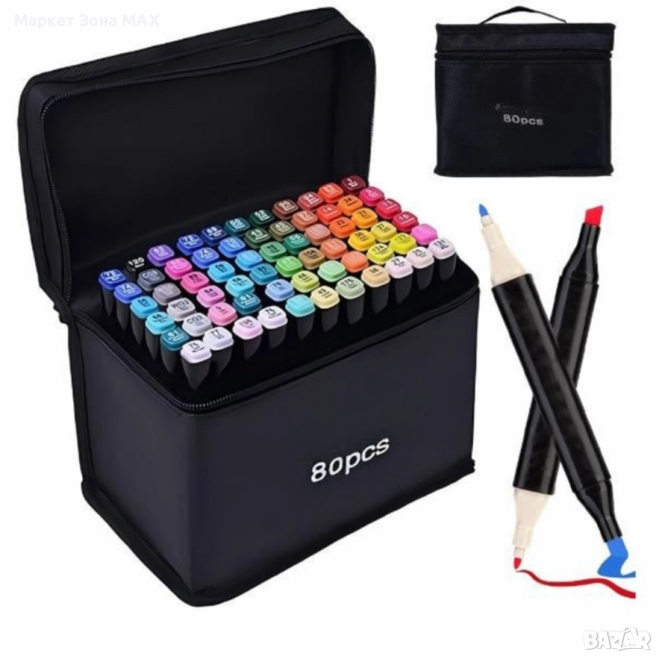 Маркер комплект – 80 цвята: Вид: двувърхи (тънък и дебел писец)