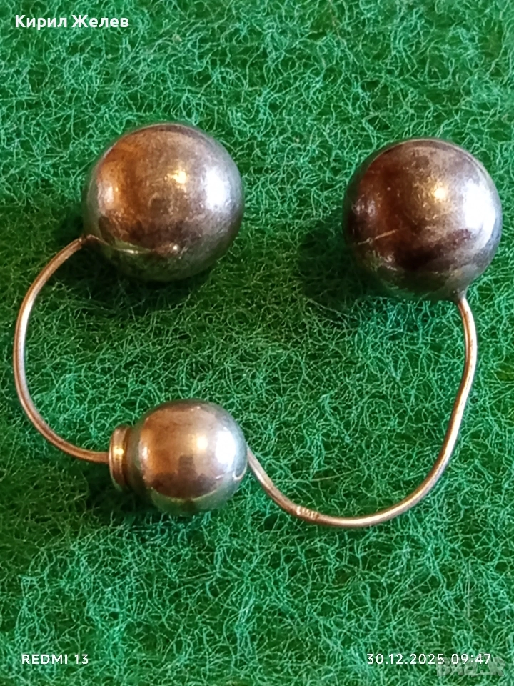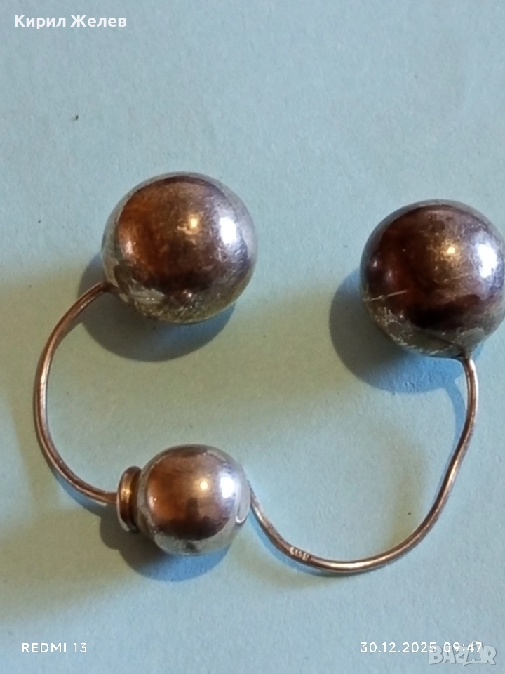 Стари ретро сребърни обеци тип Топче винтидж стил 38222
