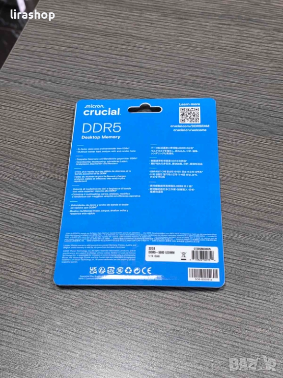 RAM памет Crucial 32GB DDR5 5600MHz UDIMM CL46 | CT32G56C46U5, снимка 1 - RAM памет - 52933869 RAM памет Crucial 32GB DDR5 5600MHz UDIMM CL46 | CT32G56C46U5, снимка 2 - RAM памет - 52933869 1/2