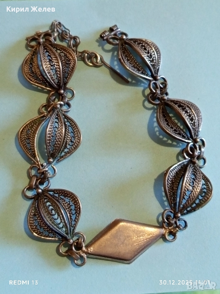 Красива винтидж сребърна гривна с филигранна изработка в етно стил 52645
