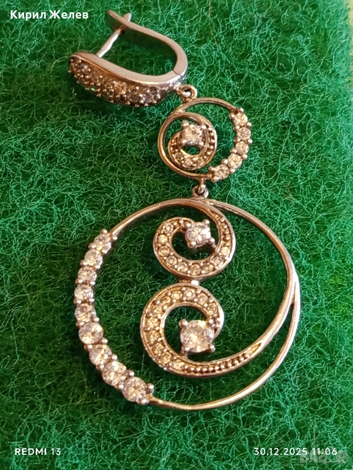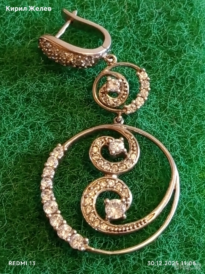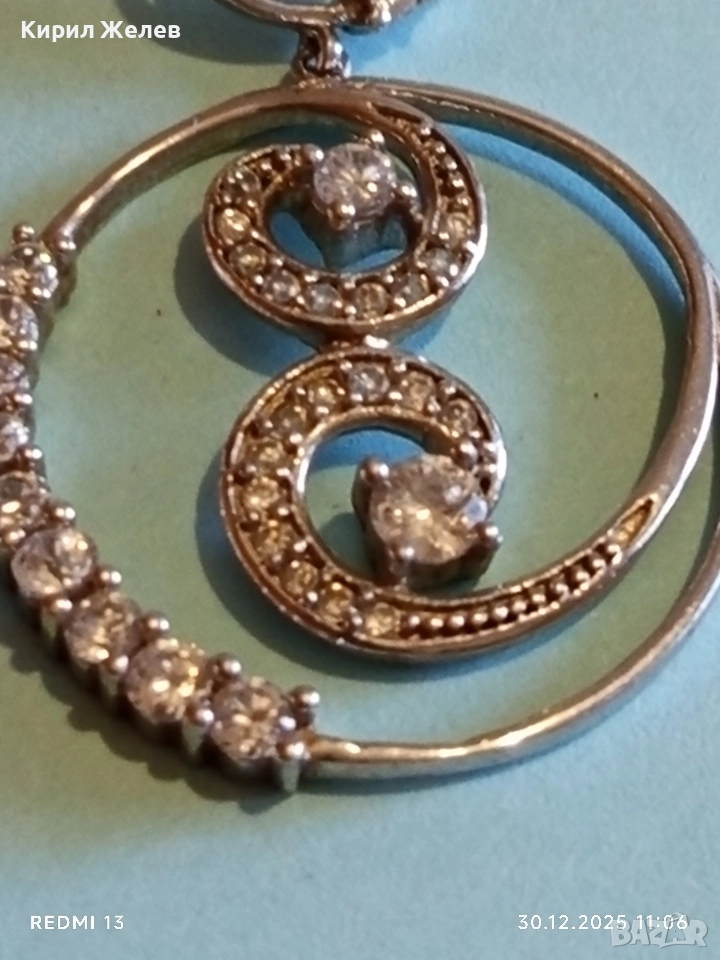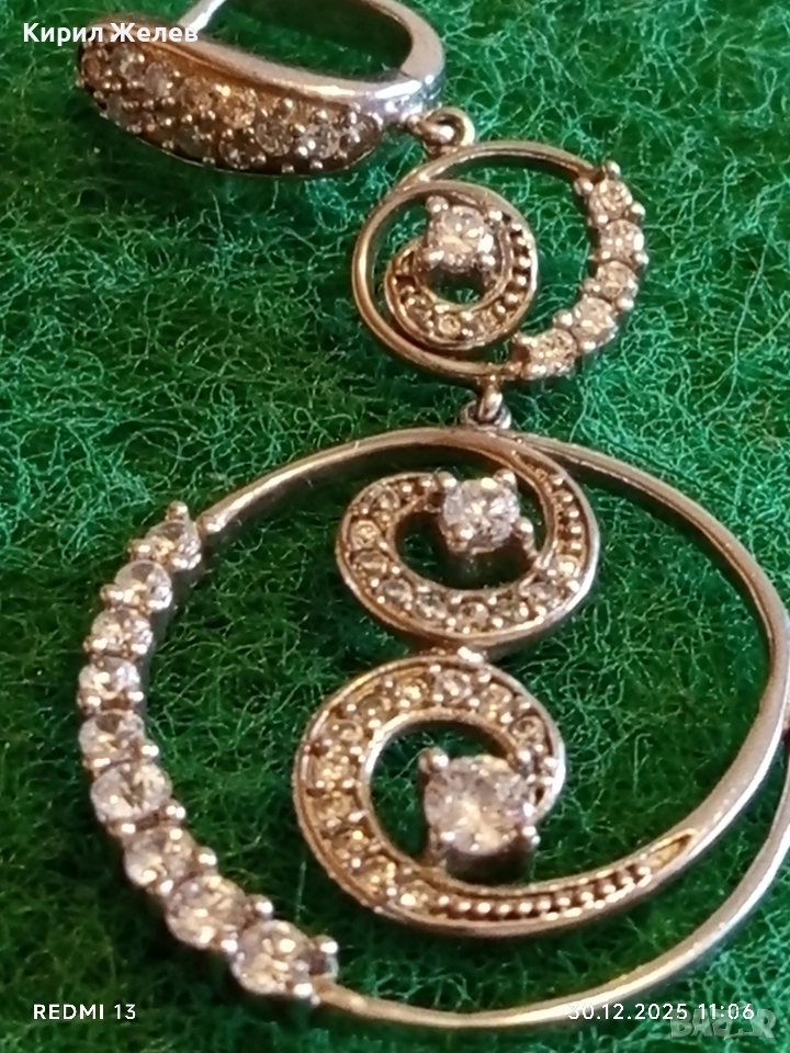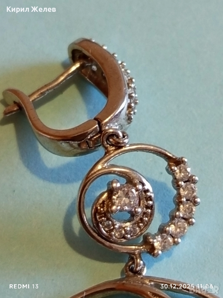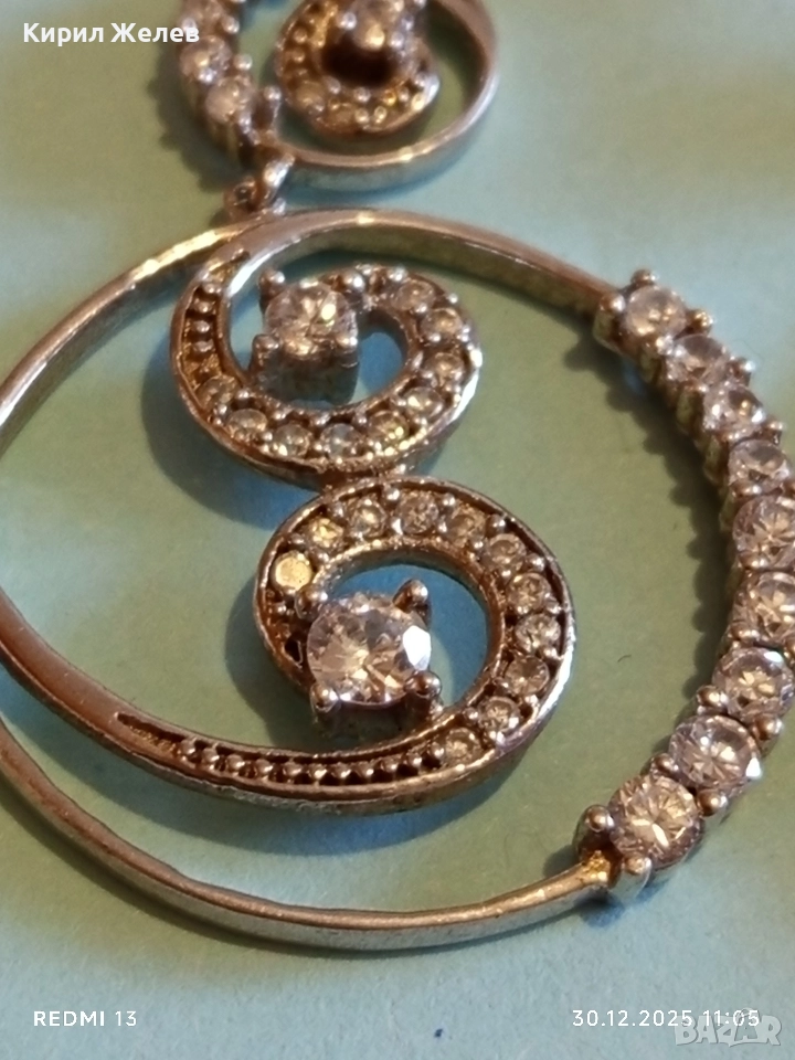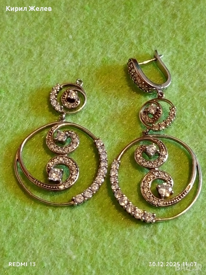Абстрактни сребърни обеци с ювелирно инкрустирани кристали елегантни 14958