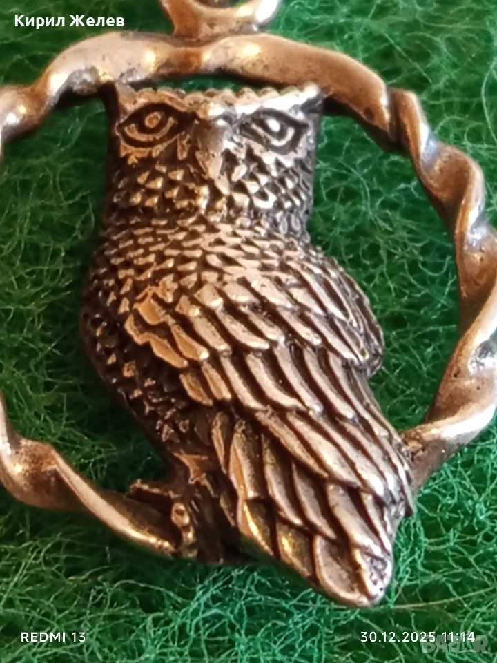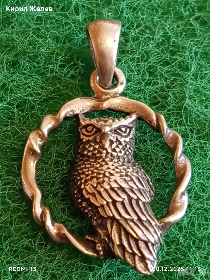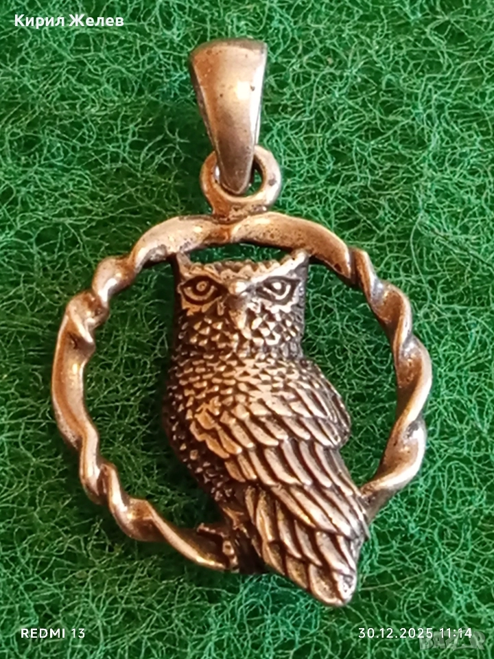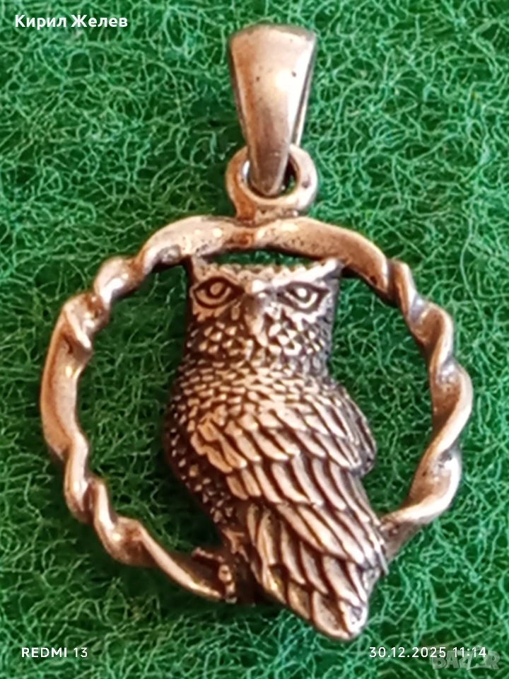 Модерен дизайн сребърна висулка БУХАЛ в ВЕНЕЦ символизира мъдрост и знание 52544