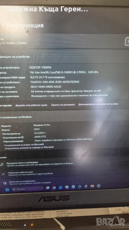 Лаптоп Asus FX506HC-HN004 → Обява 52934689