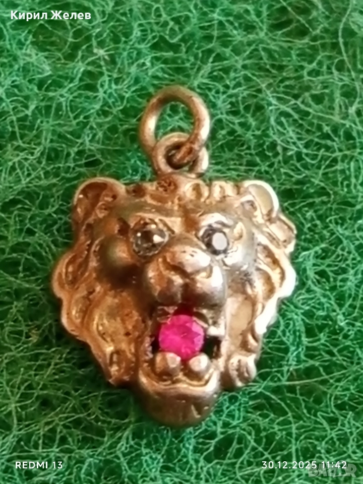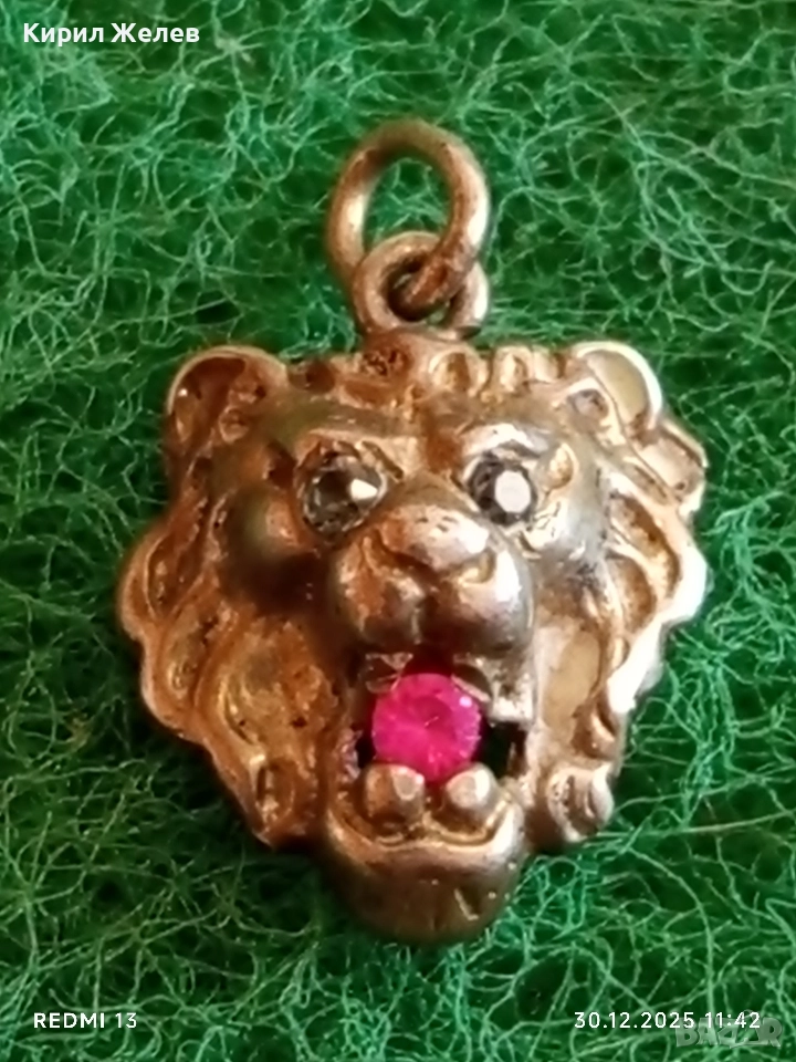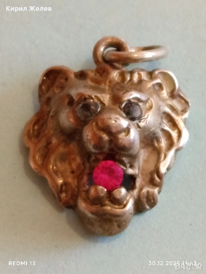 Сребърна висулка Лъвска глава с рубин символизира сила, лидерство 52549