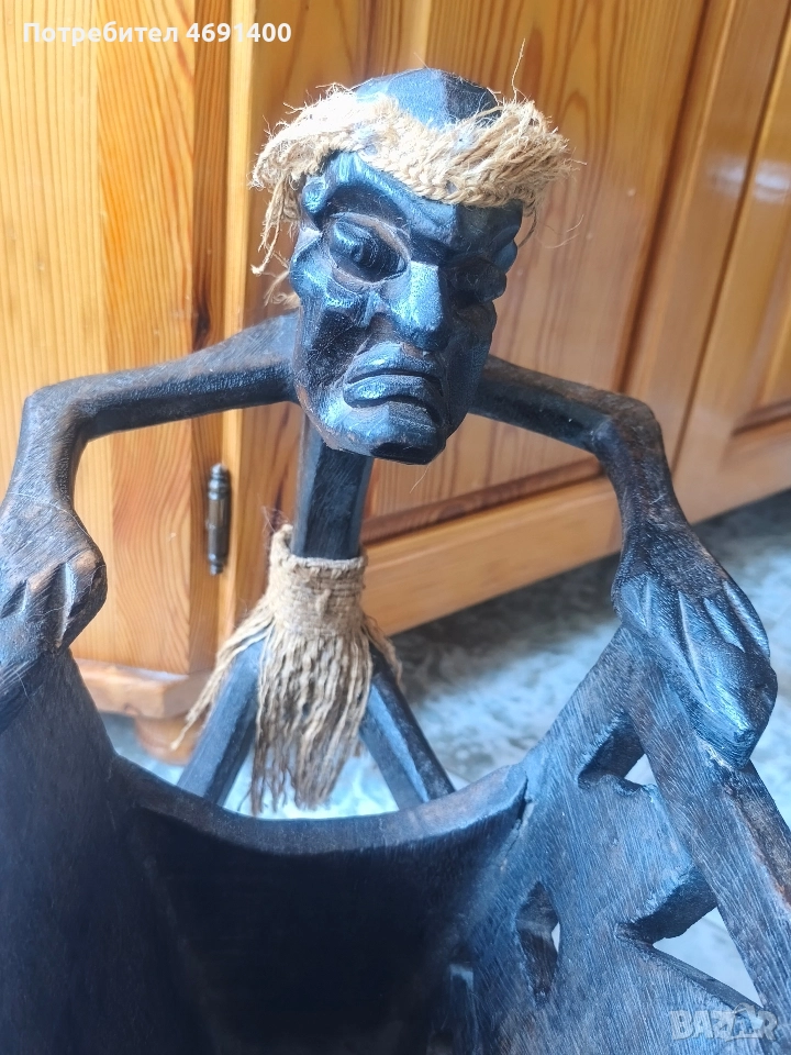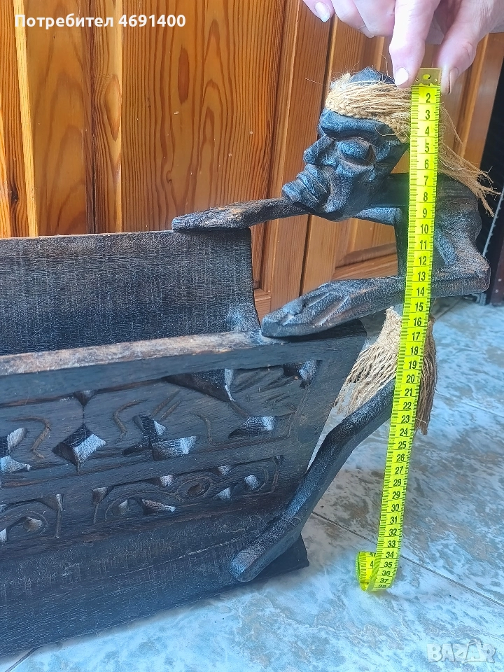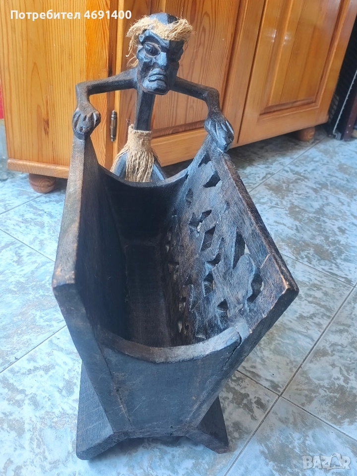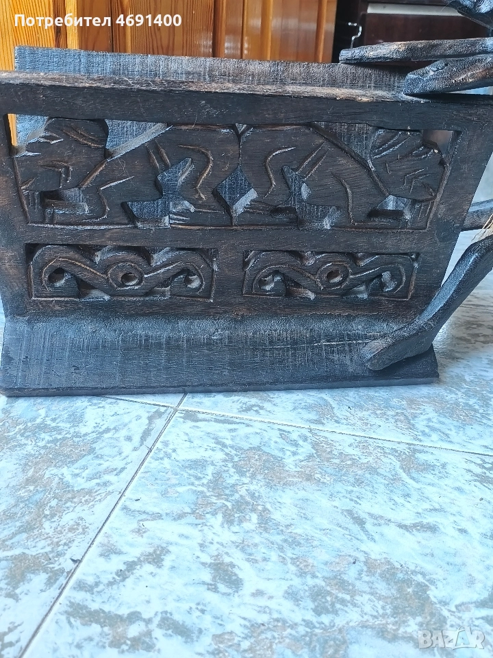 Дървена ръчно изработена стойка за вестници – Масивна дървена рамка с декоративна резба