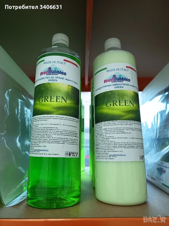 Универсален гел за пране Green за цветно и бяло пране (по един литър шишето) цена 3.80 €
