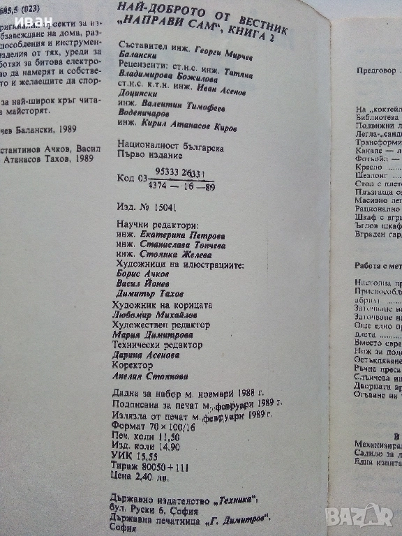 Най-доброто от вестник "Направи сам" 2 - 1989г. → Обява 52935749