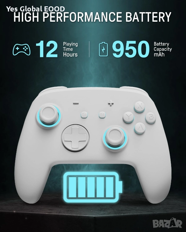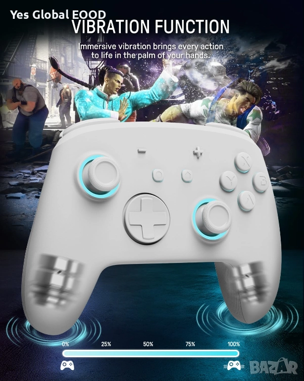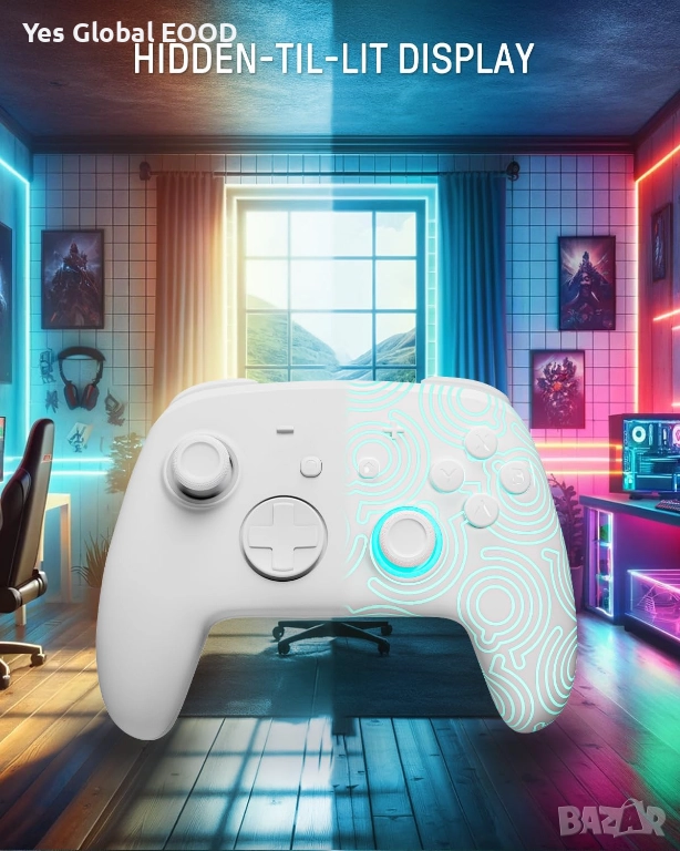 Безжичният гейминг контролер PALPOW е съвместим със Switch 2, Switch OLED и Switch Lite и предлага стабилна Bluetooth връзка за плавен и точен геймплей. RGB подсветката придава модерен стил и позволява персонализация, а ергономичният дизайн осигурява комфорт дори при дълги игрови сесии. Контролерът е подходящ както за ежедневна игра, така и за по-интензивен гейминг. Стилният бял цвят допълва модерната визия на конзолата.