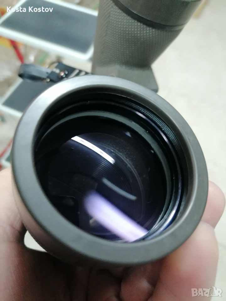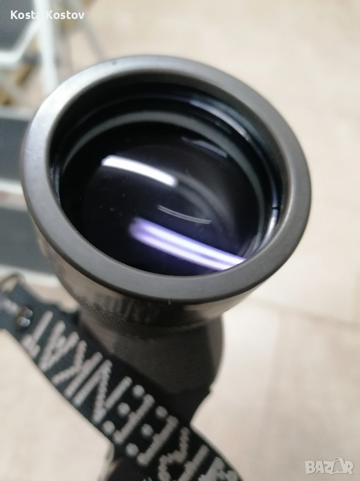 Без замърсявания, без наранявания, чиста и центрована оптика! Произведен е след отпадането на кодовете на производителите в Япония, няма маркери и вътре в корпуса, където го поставят понякога! Обективите са уплътнени заводски с полиестерни гривни, върху които се поставят още едни и след това затягащите такива! Луфт в обективите=0.! 4-слоен окуляр в поредица 1-2-1,останалото е на снимките! Снимката с БПЦ е за представа за габарититеС преглед и тест срещу 75е.Тел. 0888131781.