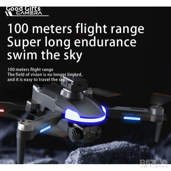 Основната 1080P HD камера позволява заснемане на ясни видеа и снимки, а вторичната камера осигурява по-широк ъгъл на виждане. Камерата може да се регулира по време на полет, което дава по-голяма свобода при кадриране.
