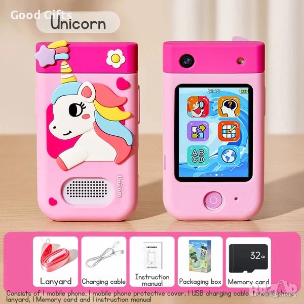 - 1 × Детски телефон (по избор: еднорог или динозавър)