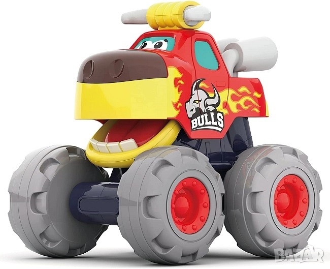 Забавният камион - чудовище Monster trucks 🔥 представя нови идеи за игра и безкрайно забавление. Натиснете бутона отгоре и ще отворите устата му. Ще се покажат страшните му зъби. Камионът може да се движи напред или назад чрез бутане или дърпане. Перфектен размер за деца. Любима играчка на детето, независимо дали то е в стаята за игра или на открито. Страхотна играчка и за пътуване.