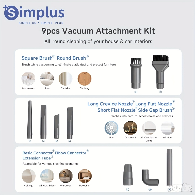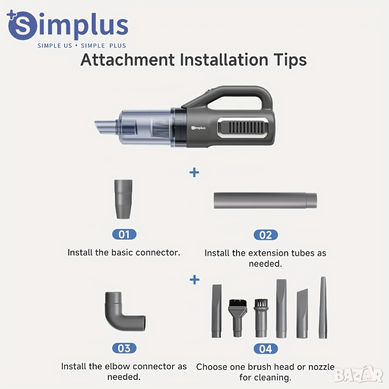Компактна, мощна и удобна – Simplus 2 в 1 е идеалното решение за бързо и ефективно почистване у дома. Може да се използва както като вертикална, така и като ръчна прахосмукачка, което я прави изключително практична за подове, мебели и труднодостъпни места.