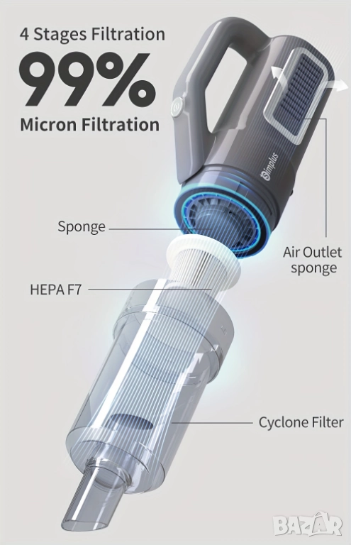 ✅ 🌀 Двойна ефективна филтрираща система (HEPA)