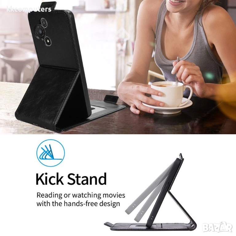 Практичен вертикален флип дизайн: Уникалният вертикален флип капак се отваря лесно за достъп, а магнитното затваряне го държи сигурно затворен, предпазвайки екрана в джоба или чантата.