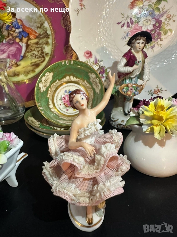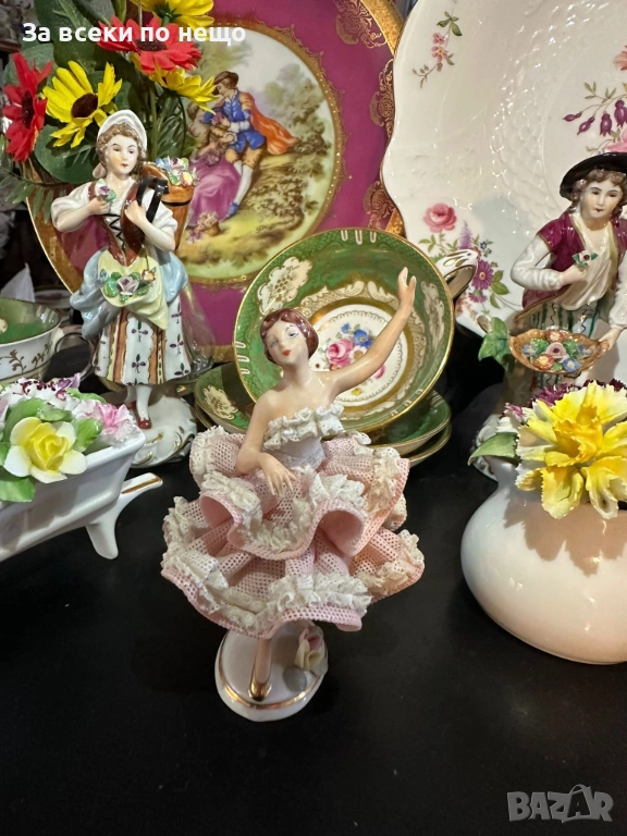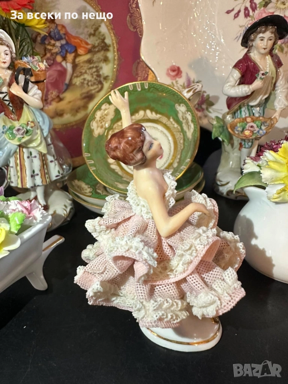 Dresden Lace Germany - “Балерината” немско великолепие и класа, синеока, красива и с изключително запазена дантела красавица, в изящен тоалет и с уникално изработени детайли, височина 12 см, рядък и чаровен модел, достоен за всяка изискана колекция или витрина.