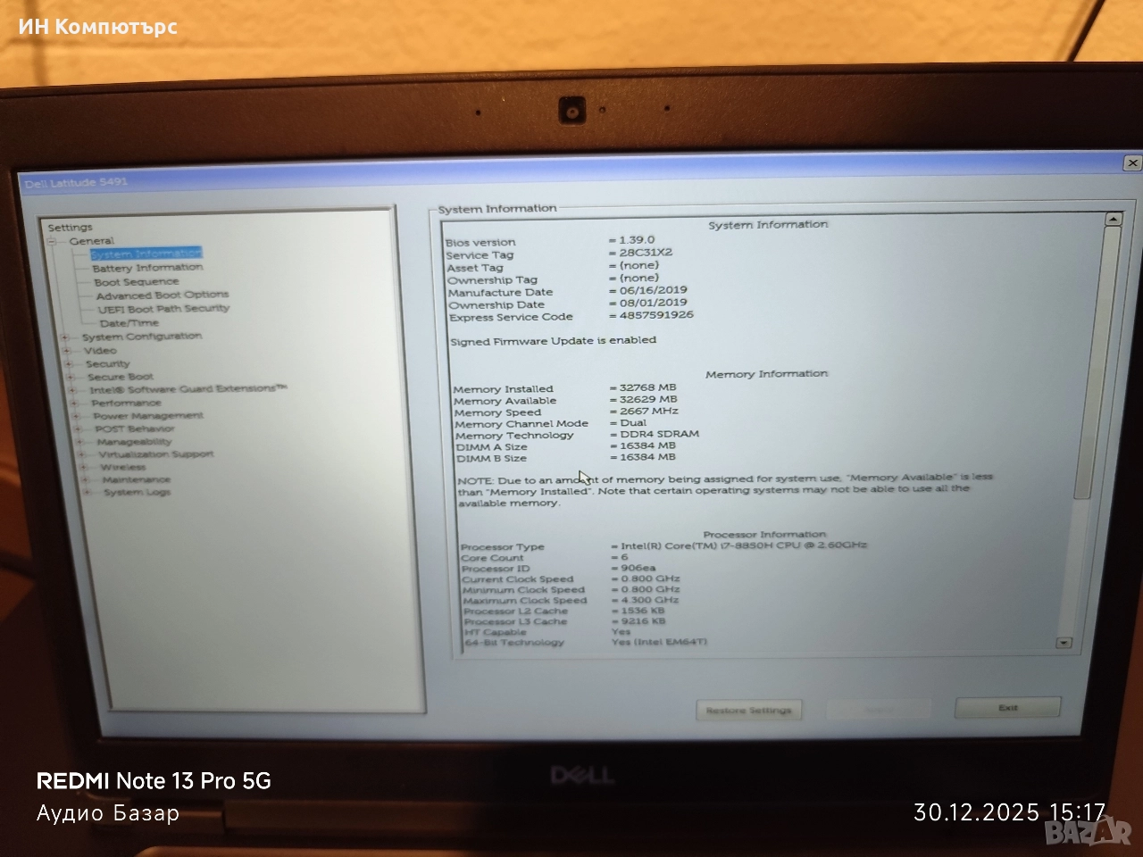 Продавам лаптоп/преносим компютър Dell Latitude 5491