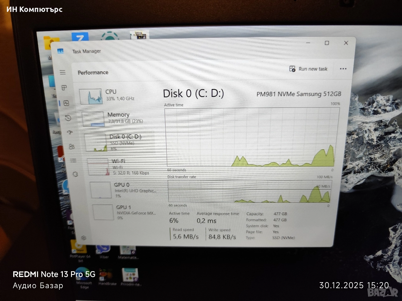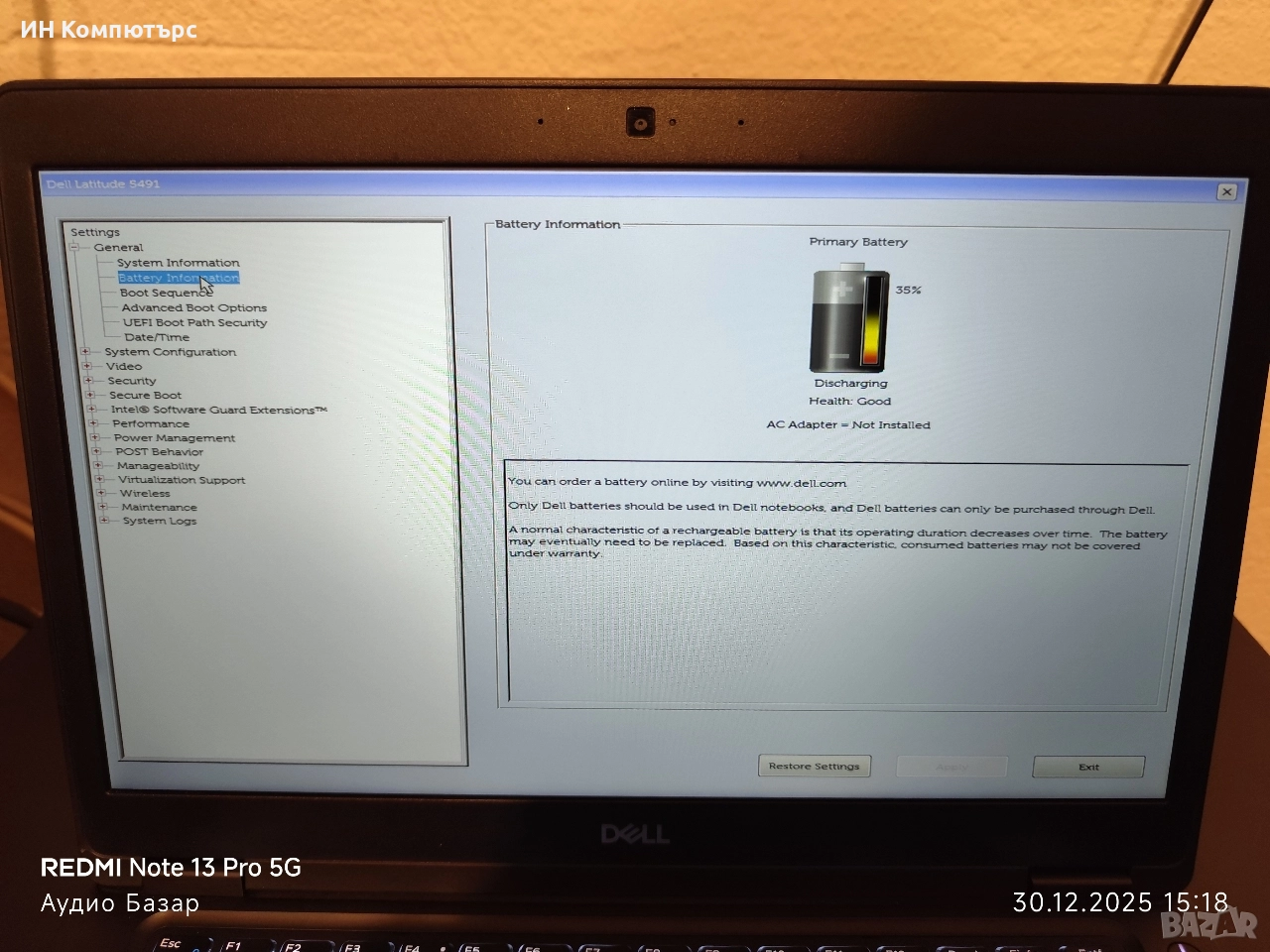 Батерия: статус GOOD в биос/36% износване. Издържа до 4 часа в режим на работа