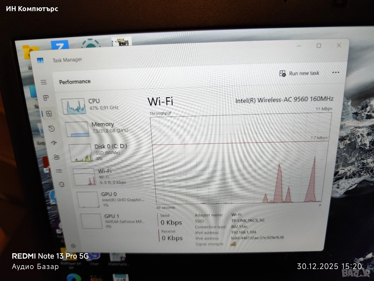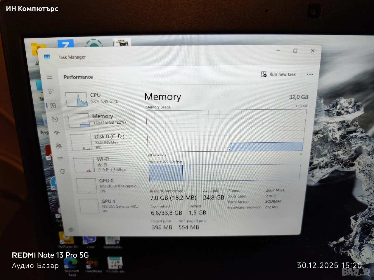Рам: 32GB/2 x 16GB DDR4 на 3200MHz/работи на 2666MHz