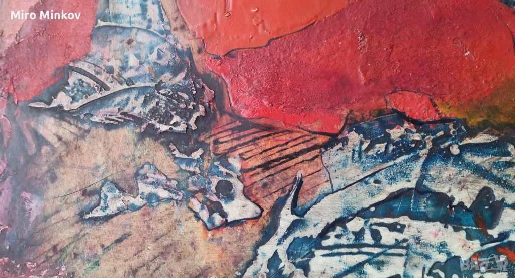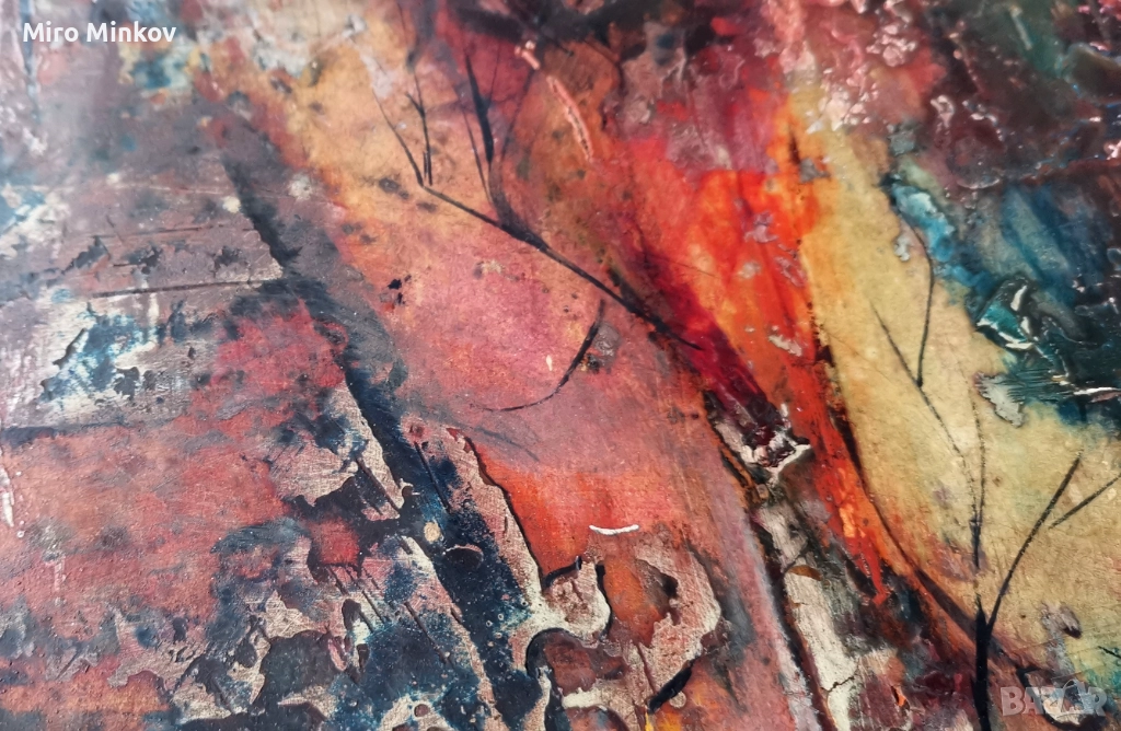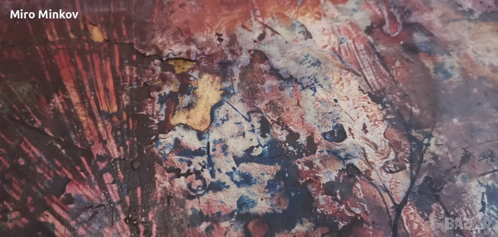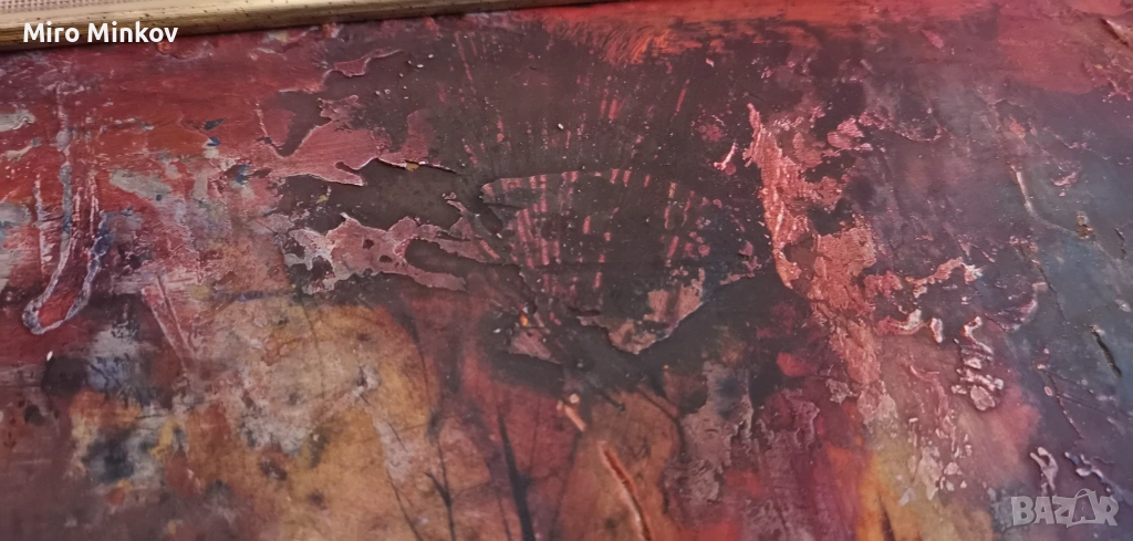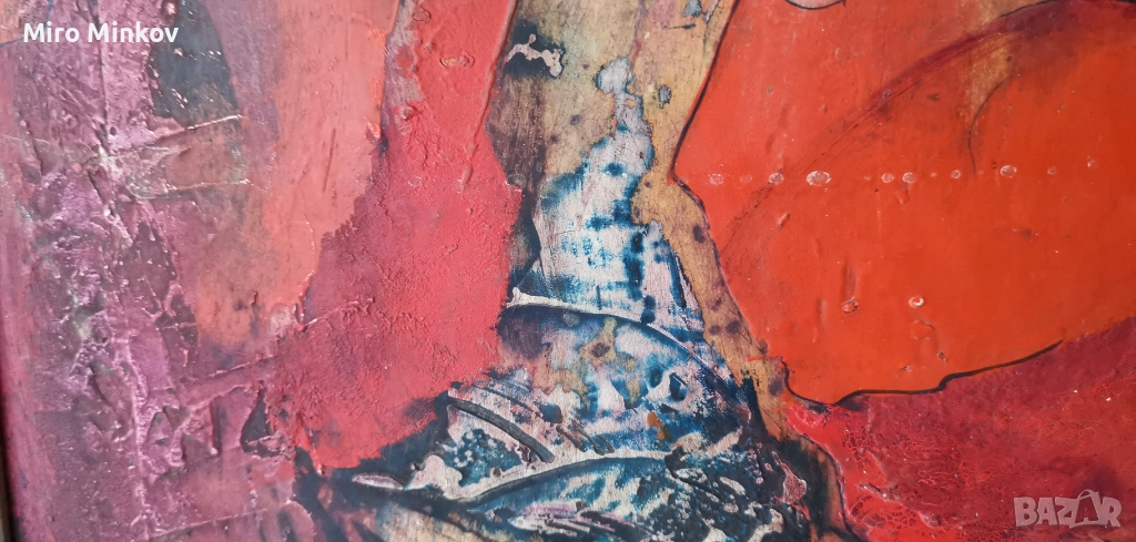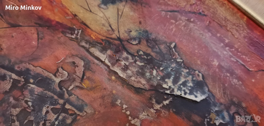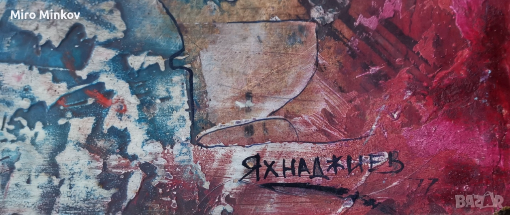 картина на Иван Яхнаджиев, маслени бои, специална техника, размери 62 см х 51 см, подписана, датирана 1977 г.