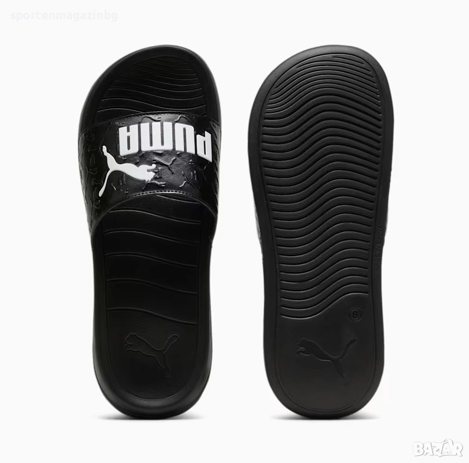 Здрава, зашита конструкция. Създадени за стабилност, осигурявайки изключителна издръжливост през целия ден без компромис с комфорта. Мека лента в горната част, изработена от синтетична кожа и приятна подплънка за естествено движение на краката. Очертаната стъпална подложка все едно е излята по краката, не позволява хлъзгане, изпотяване и е изключително мека. Отличителен релефен надпис Puma с лого върху лентата. Междинната подметката е с EVA пяна предлагаща отлични омекотяващи свойства и анатомична опора за краката. Външна набраздена подметка против хлъзгане, устойчива на износване. Горната част на чехлите е изработена от поне 20% рециклирани материали.