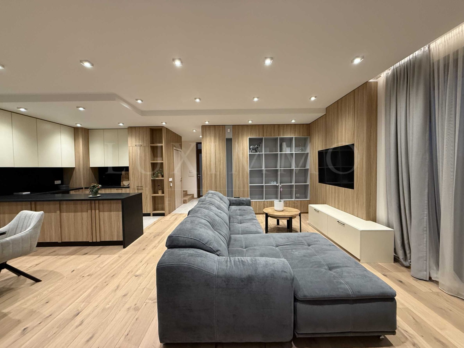 Общата площ на имотите: 165 м2, а с подземното ниво, където е гаража стават 240 м2.