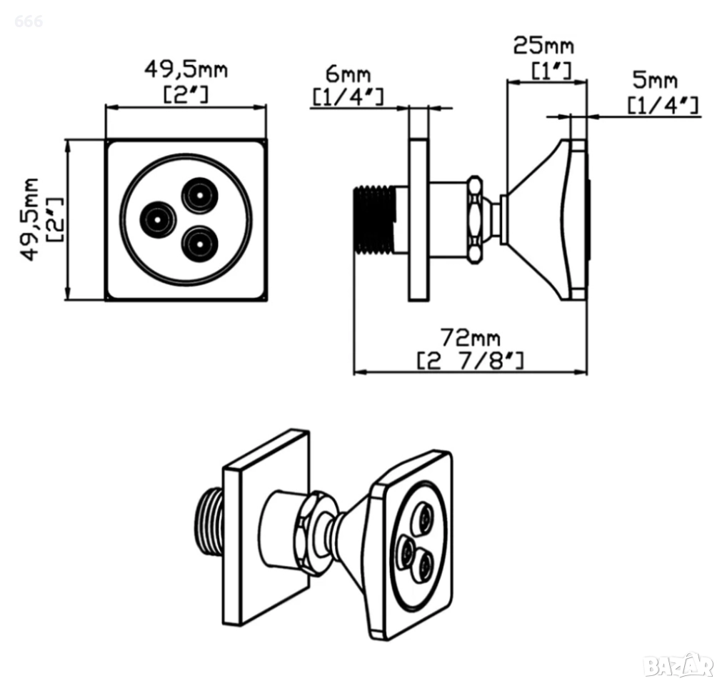 【Хидротерапевтично изживяване】Тази 2-инчова квадратна душ глава с 3 дюзи осигурява ободряваща струя с голям обем за подмладяващо хидротерапевтично изживяване. Единична силна струя стимулира хидромасажния поток, за да облекчи мускулното напрежение.