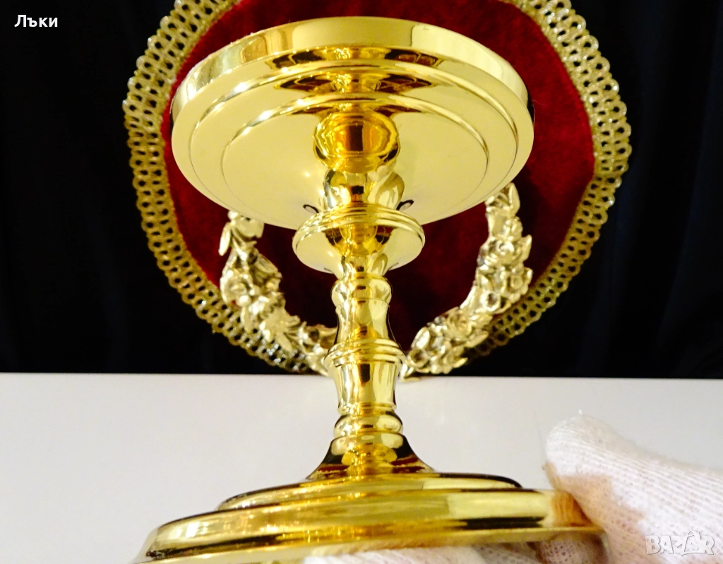 отлят от високо качествен бронз,дебело позлатен с 24 карата злато.Декориран с