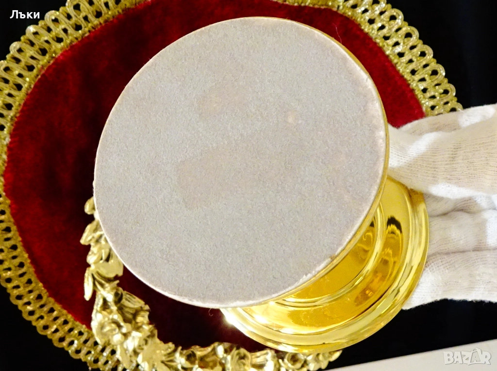кадифе.Височина 10 см.,диаметър 9.5 см.,тегло 360 гр.