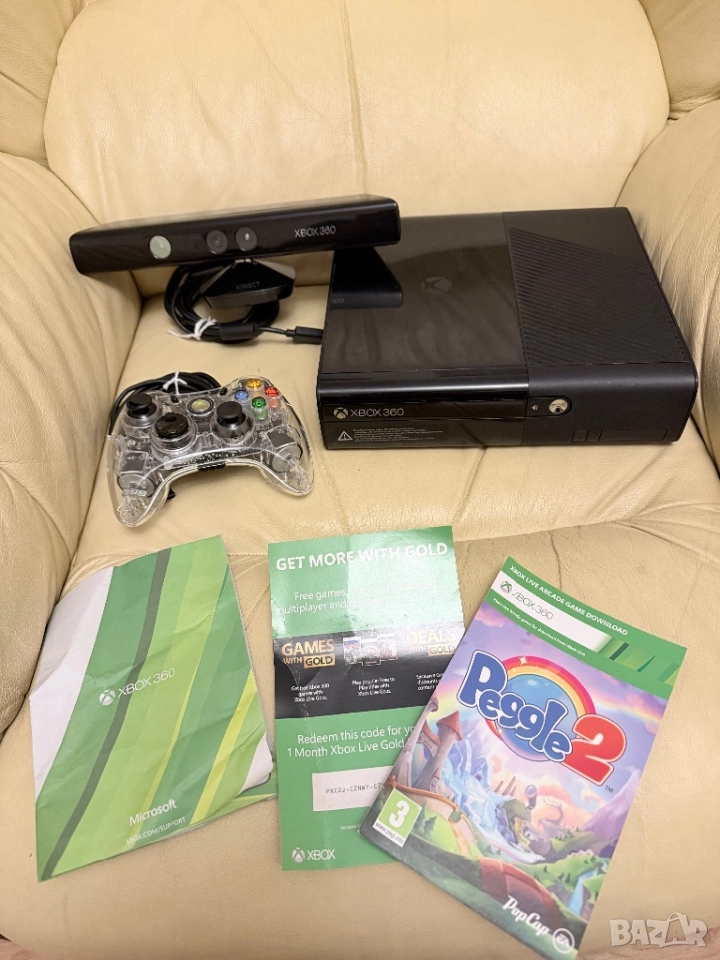 Xbox 360 E (boxed) с кинект +кристален контролер и игри в кутия