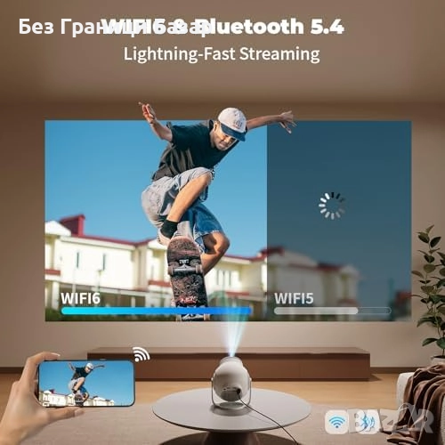 Нов Смарт мини проектор 1080P 480 ANSI WiFi 6 Android 14 180° ротация