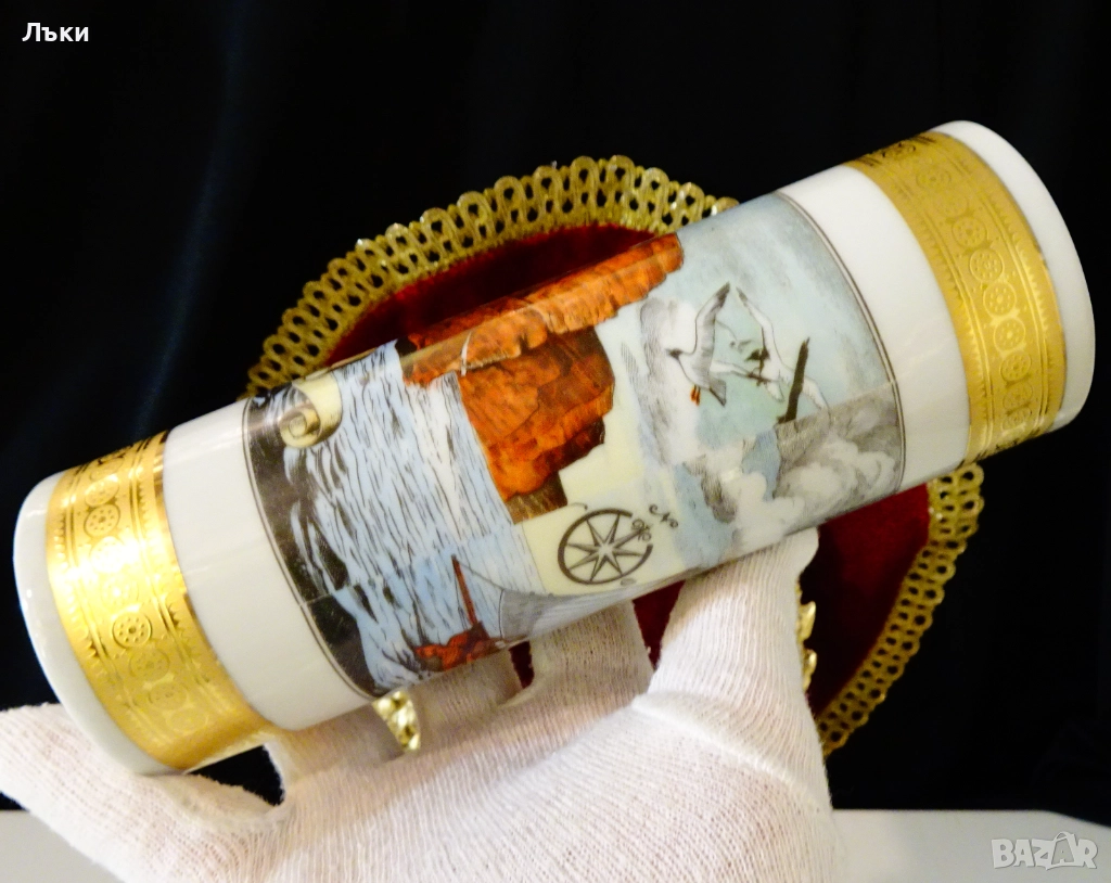 Стара немска порцеланова ваза,ръчно рисувана с красив пейзаж