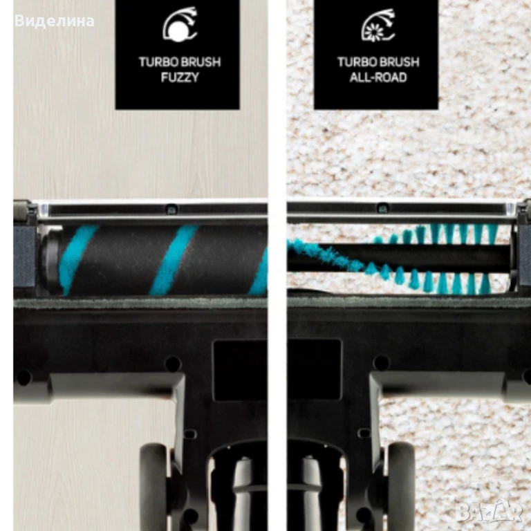 Два сменяеми четкови накрайника: Fuzzy (твърди подове) и All Road (килими);