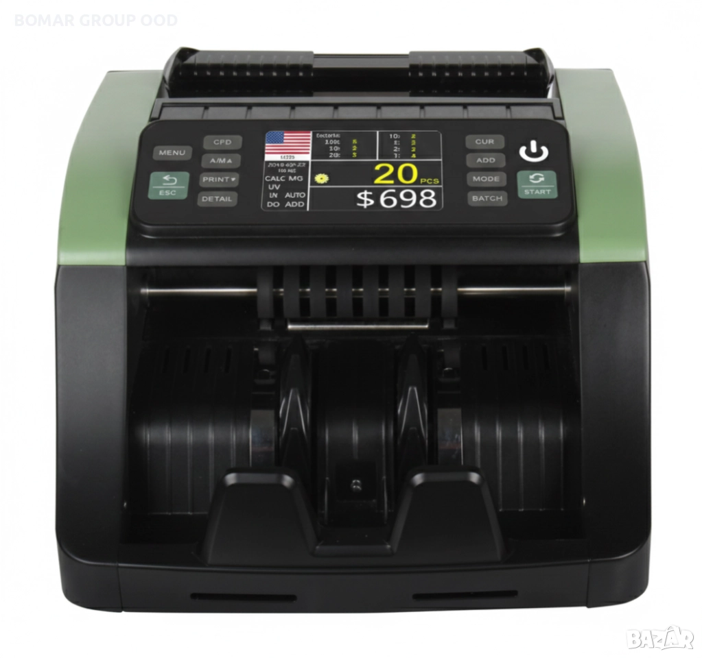 Интуитивен Дисплей - 3.5-инчов TFT екран, осигуряващ ясна и детайлна информация за процеса на броене, валутата и отчетите за грешки.