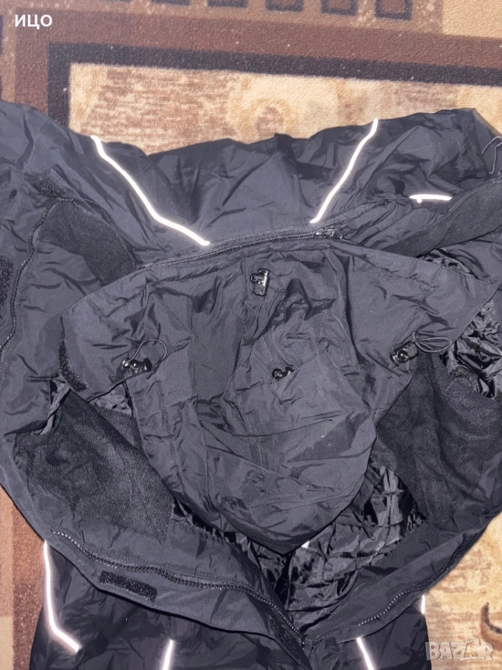 Отлично състояние. С сваляща се качулка и джобове с цип. Вътрешен джоб. Ципове на подмишниците. Дължина 106см. Широчина на подмишниците 50см. Дължина на крачол 80см. Размер L. Цена 130лв.
