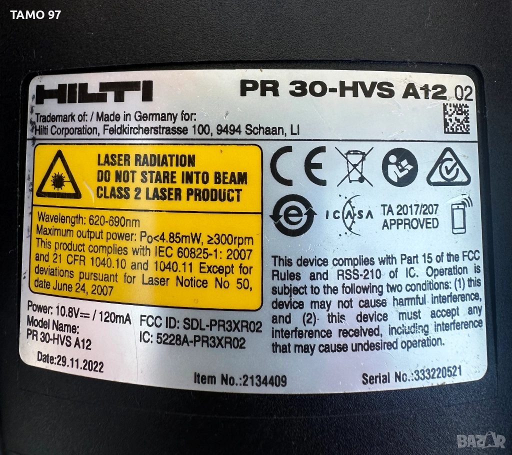 Продавам професионален ротационен лазер на Хилти в перфектно визуално състояние, както се вижда на снимките, също така всичко функционира и работи без грешки, оригинално немско производство от 2022г. внос от Франция. Комплекта включва лазер PR 30-HVS А12, приемник PRA 30, една батерия 12V 2.6Ah с индикатор, зарядно c 4/12-50. Пращаме с опция преглед и тест с куриерска фирма еконт може и лично предаване за гр. Шумен.
