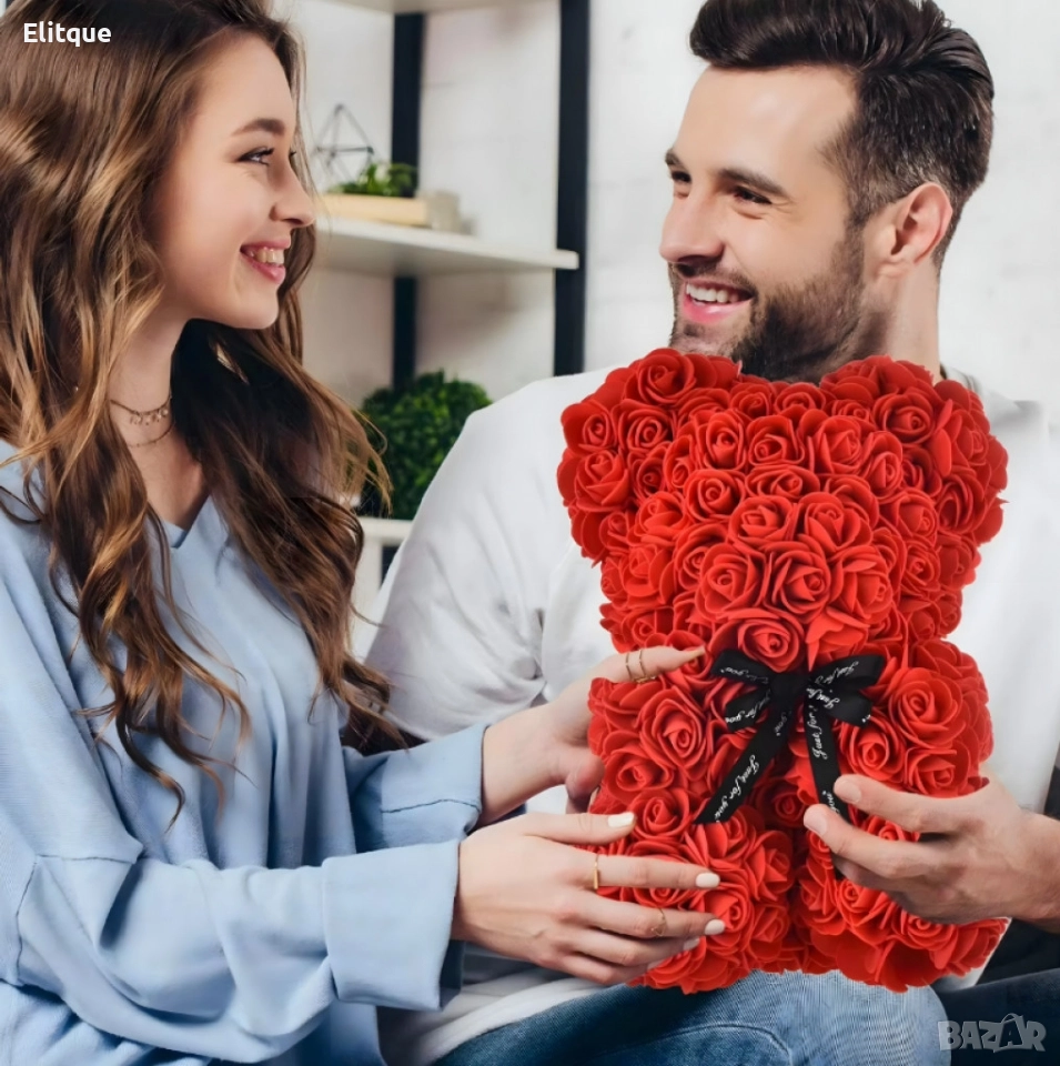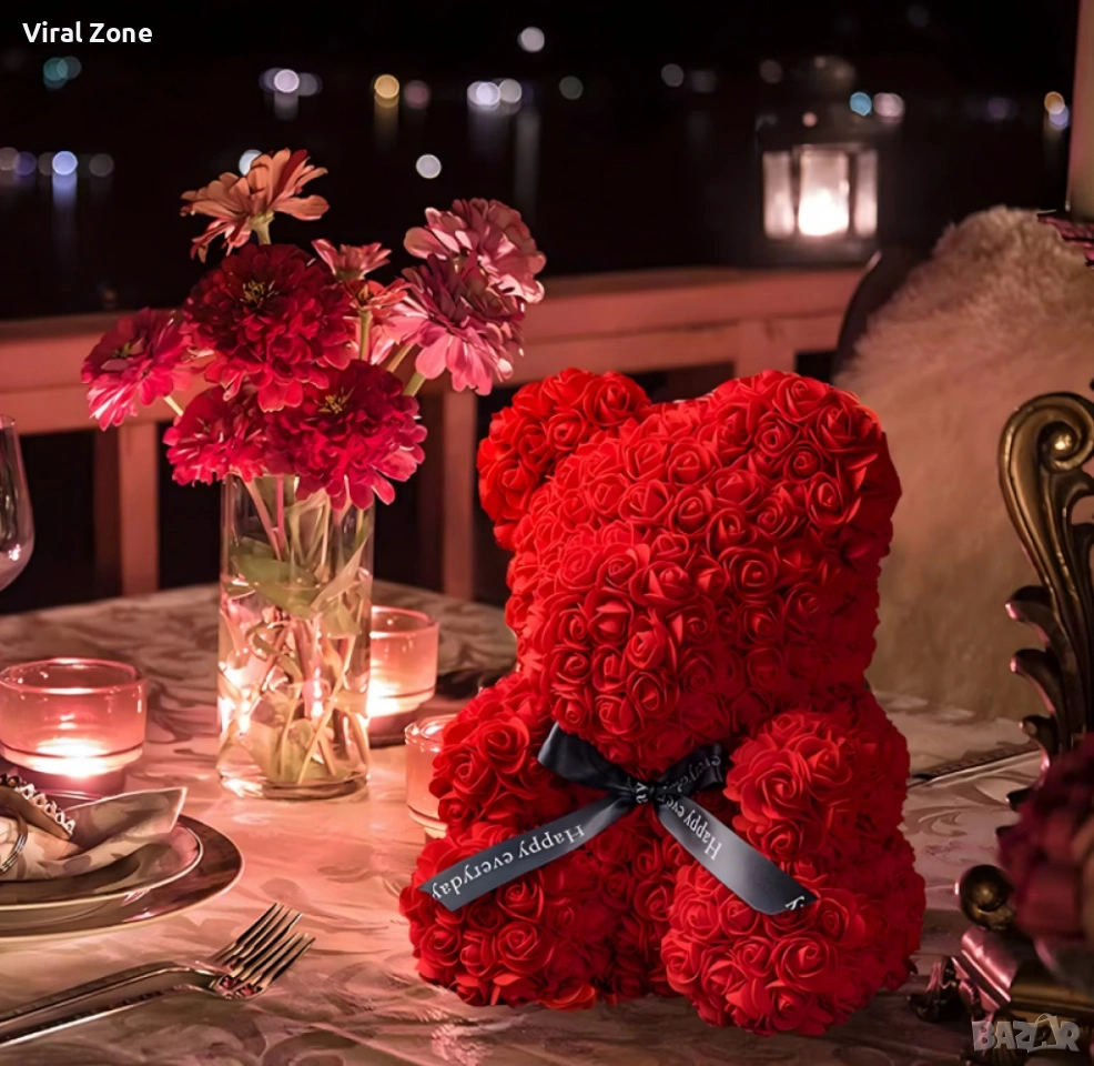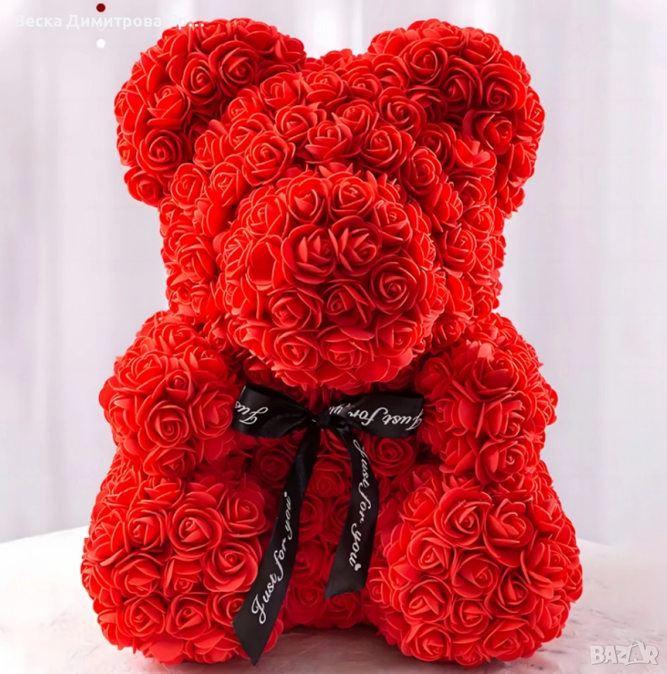 Плюшено мече с LED рози - подарък за мама, момиче, баба - комплект вечни рози 25 см