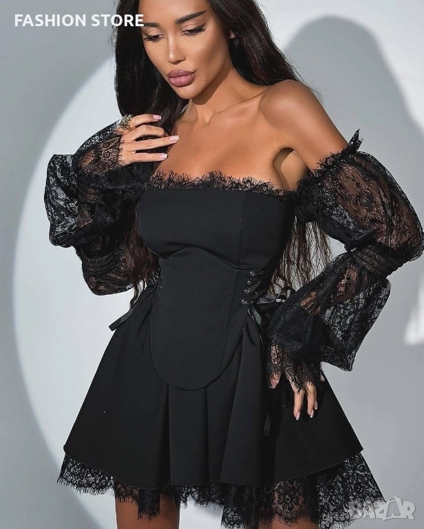 Луксозна рокля с корсет и дантела🖤 → Обява 52939714
