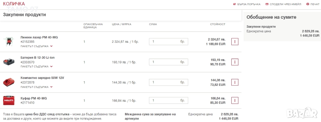 Магазинската цена на комплекта както го предлагам е: 1 446.59евро БЕЗ ДДС (С ДДС е 1 735.90евро)